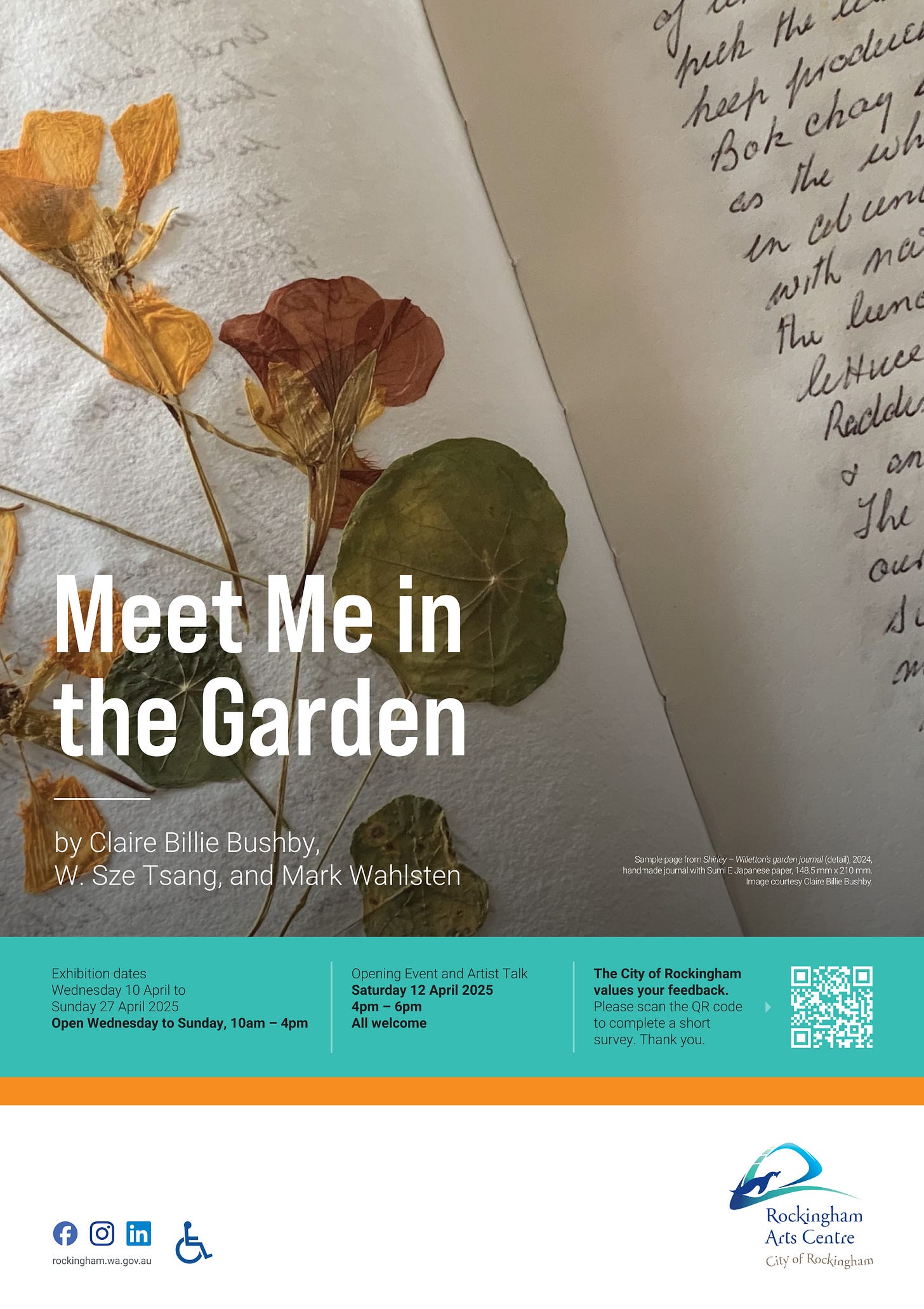 This special event will include a conversation between the exhibiting artists and guest facilitator Soula Vouyoucalos-Veyradier, who currently leads the North Metropolitan TAFE Creative Galleries and Programs. Together, we’ll explore how art might shift attitudes and behaviours toward the environment, and reflect on the meanings of nature and culture, the role of plants in our lives, and the vital lessons gardens offer as spaces of cultivation, care, and change.